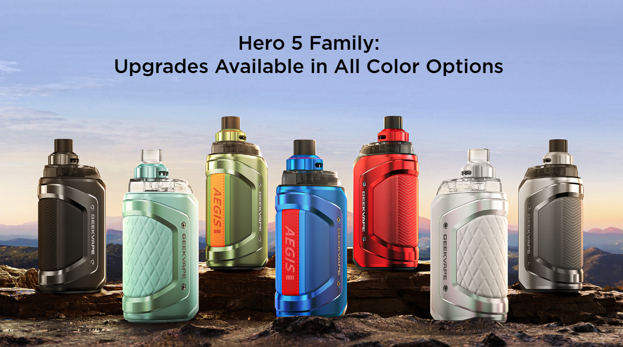 The Geek Vape Aegis Hero 5 Kit is part of the popular Aegis series, reintroduced with upgrades! The compact pod kit comes with a 2000mAh battery - that's 40% more than the previous Hero 3 - and fires up to 50W with fast USB-C (5V/2A) charging. Smart Mode detects your coil resistance and sets the right wattage to stop dry hits and makes coils last longer. Looking for more control? The Aegis Hero 5 also offers Variable Wattage so you can dial in your preferred power level.