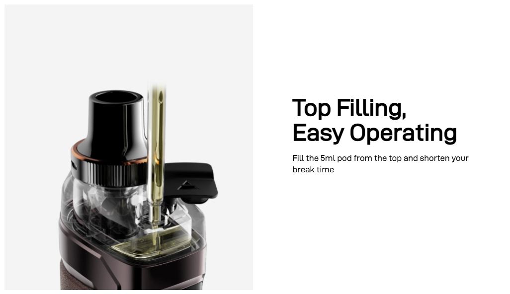 The Armour GS pod features a top-fill design for quick, mess-free refills. The transparent chamber makes it easy to see your e-liquid level at a glance. Vaporesso’s leak-resistant design means you can carry your Armour GS with confidence.