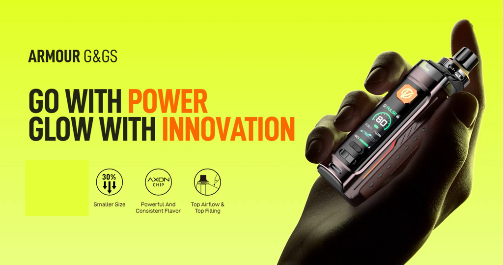 The Vaporesso Armour GS Pod Kit packs powerful performance and durability into a compact, user-friendly design and is powered by a single 18650 battery (sold separately). Whether you enjoy tight MTL pulls or big DTL clouds, you’ll get full control with adjustable airflow and up to 80W of adjustable power. The Vaporesso Armour GS is compatible with the Armour G Pods and GTX Coils, which bring out the bold flavour and dense vapour. The Armour GS gives you more control over every vape with features like Smart Mode to optimise your settings, Pulse Mode for better flavour, and Eco Mode to stretch your battery life.